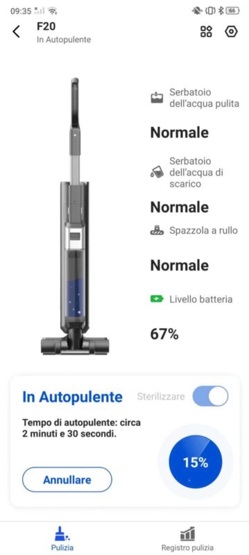 Oltre alle informazioni sullo schermo, l'aspirapolvere ci restituisce anche un feedback vocale in italiano mentre svolge le varie operazioni.