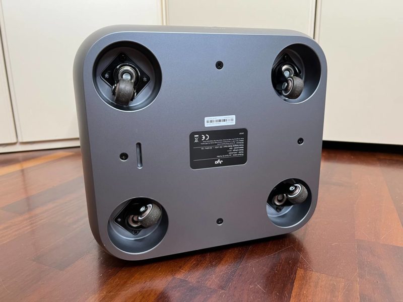 La forma è abbastanza squadrata, il peso non eccessivo (290 × 260 × 535mm per 6.7kg), ma per spostarlo nelle varie stanze della casa abbiamo a disposizione delle comodissime rotelle nascoste nella parte inferiore.