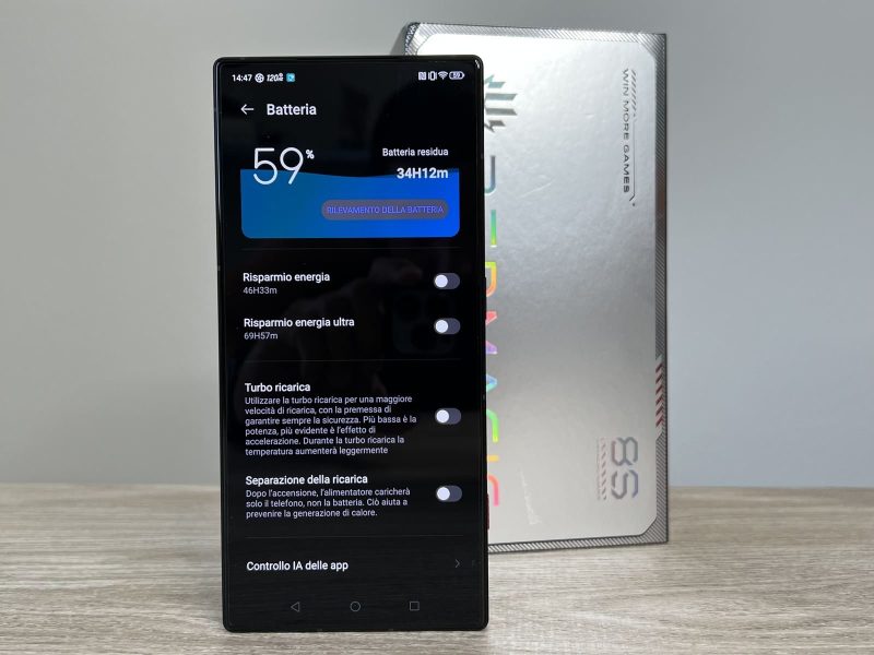 Identica a Red Magic 8 Pro, quindi autonomia infinita e ricarica molto veloce.