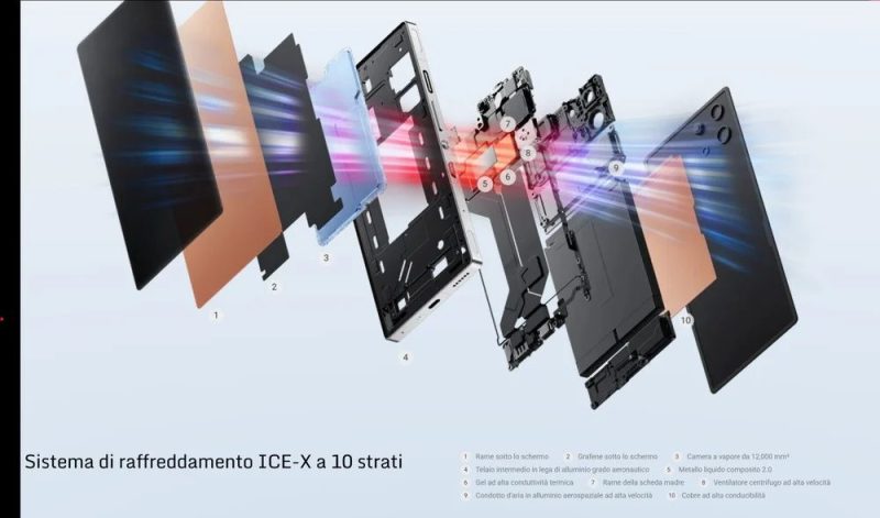Questo sistema, tradizionalmente riservato ai laptop da gaming di fascia alta, permette allo smartphone di espellere perfettamente il calore generato dal potente processore senza mai limitare le prestazioni, nemmeno dopo lunghe sessioni di gioco o stress test pesanti.