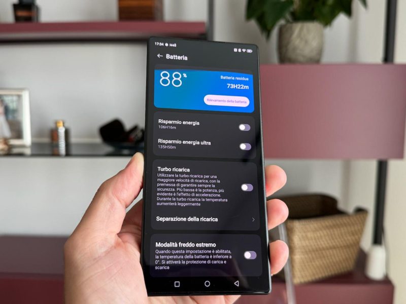 Interessante infine la funzione di separazione della carica: possiamo scegliere di non ricaricare la batteria quando il telefono è collegato all'alimentatore, in modo da non surriscaldarlo.