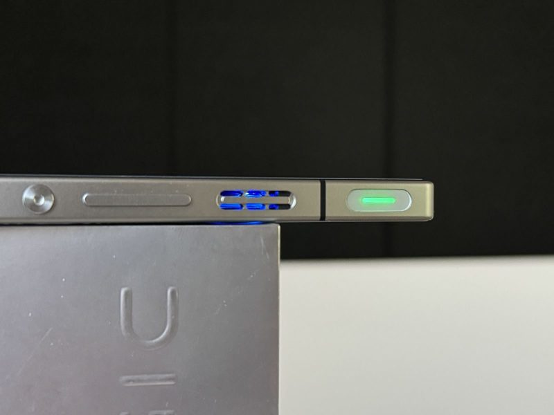 Come sempre i materiali sono al top: frame in alluminio opaco ai lati e retro in vetro trasparente, che lascia intravvedere alcuni componenti interni come il processore e la ventola RGB.