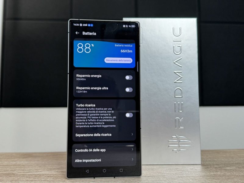 Fortunatamente l'autonomia di questo RedMagic 9 Pro è semplicemente incredibile, quindi non lo dovremo ricaricare così spesso.