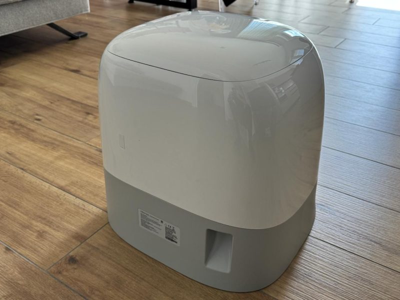 La base è molto compatta: misura 45x45x45 cm ed ha le solite linee leggermente curve tipiche della serie Curv. Apprezzo molto il fatto che il robot venga quasi completamente nascosto al suo interno.