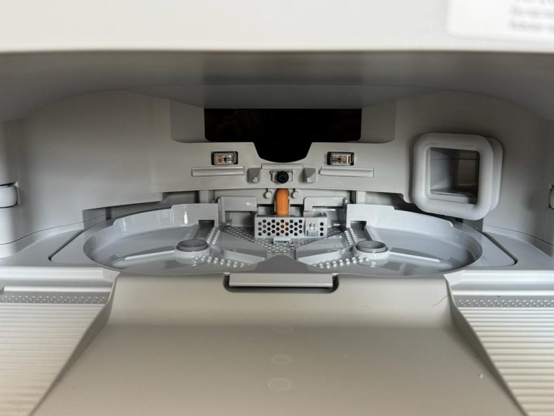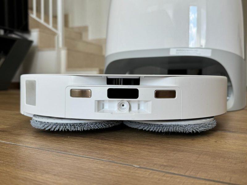 Il MOVA, infatti, sale gradini più alti, lava con acqua a temperatura costante riscaldata dal robot (e non dalla base), solleva la spazzola laterale, ha il doppio serbatoio automatico per il detergente e sterilizza il sacchetto della polvere con raggi UV.