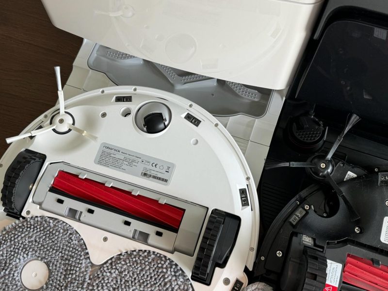 - su questo robot abbiamo una sola spazzola rotante centrale, mentre sugli ultra top di gamma di Roborock ne troviamo due contro-rotanti. Nel 99% dei casi non si notano differenze rilevanti, ma nelle case dove ci sono animali che perdono molto pelo le due spazzole si comportano leggermente meglio