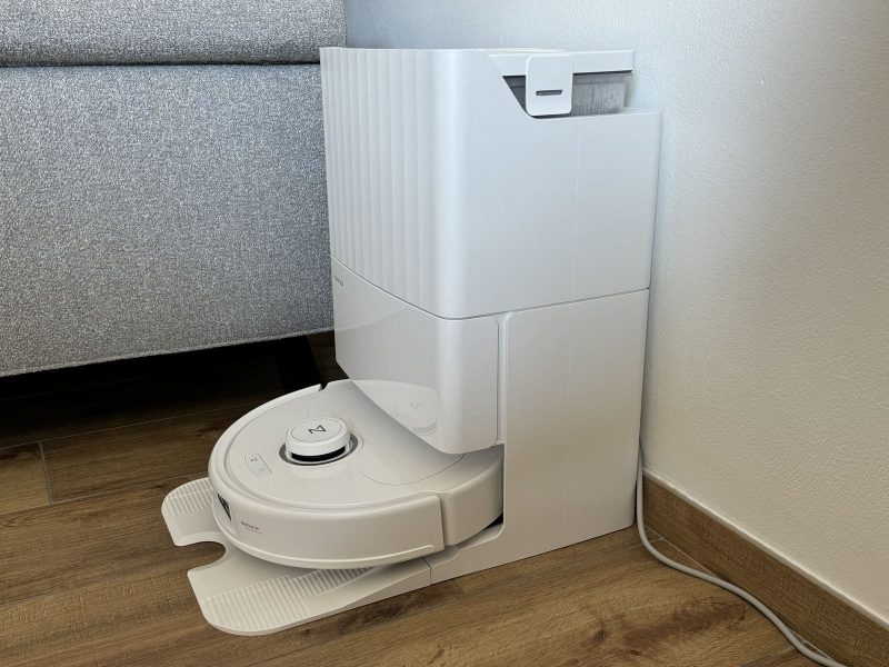 Dopo ogni pulizia torna alla base e svuota automaticamente la vaschetta di raccolta della polvere. L’operazione dura pochi secondi e non lascia indietro nessun residuo.