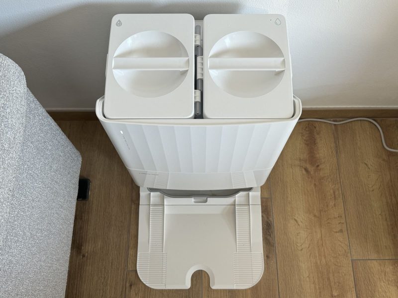 Dopo il lavaggio i mop sono asciugati con aria calda a 45°. Dall’app possiamo personalizzare sia le impostazioni di lavaggio che di asciugatura per risparmiare acqua e corrente.