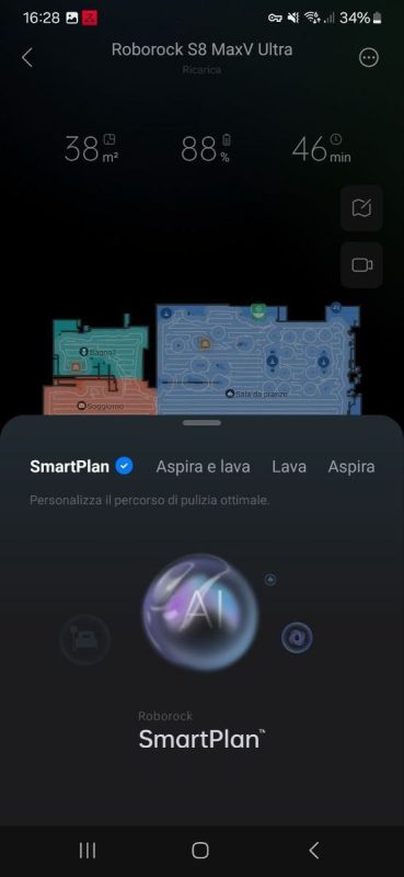 Veramente fantastica, poi, la funzione SmartPlan: basta premere un pulsante per lasciare tutte le incombenze delle pulizie al robot, che stabilisce da solo in completa autonomia tutto quello che c'è da fare per quanto riguarda aspirazione, lavaggio e pulizia automatica.