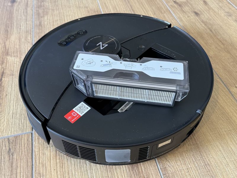 E' poi presente una copertura in plastica magnetica che, una volta sollevata, ci permette di accedere alla vaschetta della polvere da 270ml. Il robot comunque si svuota automaticamente dopo ogni pulizia.