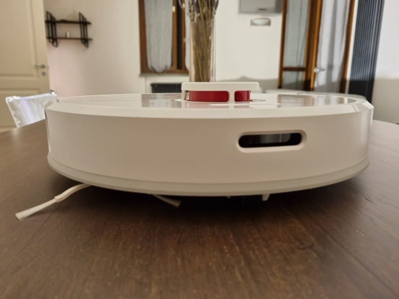Oltre alla classica torretta con i laser per la navigazione, nella parte superiore troviamo lo sportello che ci permette di accedere al contenitore per lo sporco raccolto. Quest’ultimo è davvero molto capiente (570 ml) e risulta perfetto anche per ambienti di grandi dimensioni.