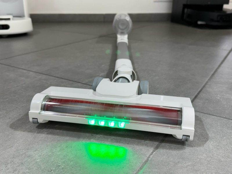 Dove non arriva il robot possiamo usare la scopa elettrica, che può aspirare in modalità di potenza minima (8000 Pa) o massima (20000 Pa).