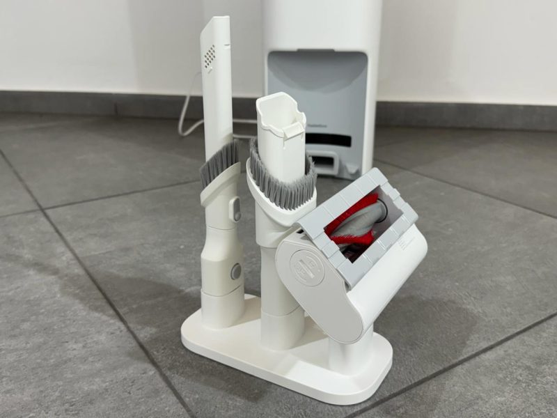 - un'eccellente scopa elettrica senza filo e senza sacco, che ci permette di arrivare in tutte le zone non accessibili al robot e che si svuota da sola dopo ogni pulizia