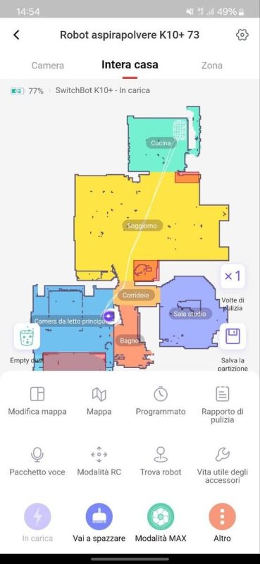 Nella prima mappatura non ha suddiviso correttamente tutti gli ambienti della mia casa, ma è stato sufficiente intervenire tramite l'app in pochi click per dividere le stanze.