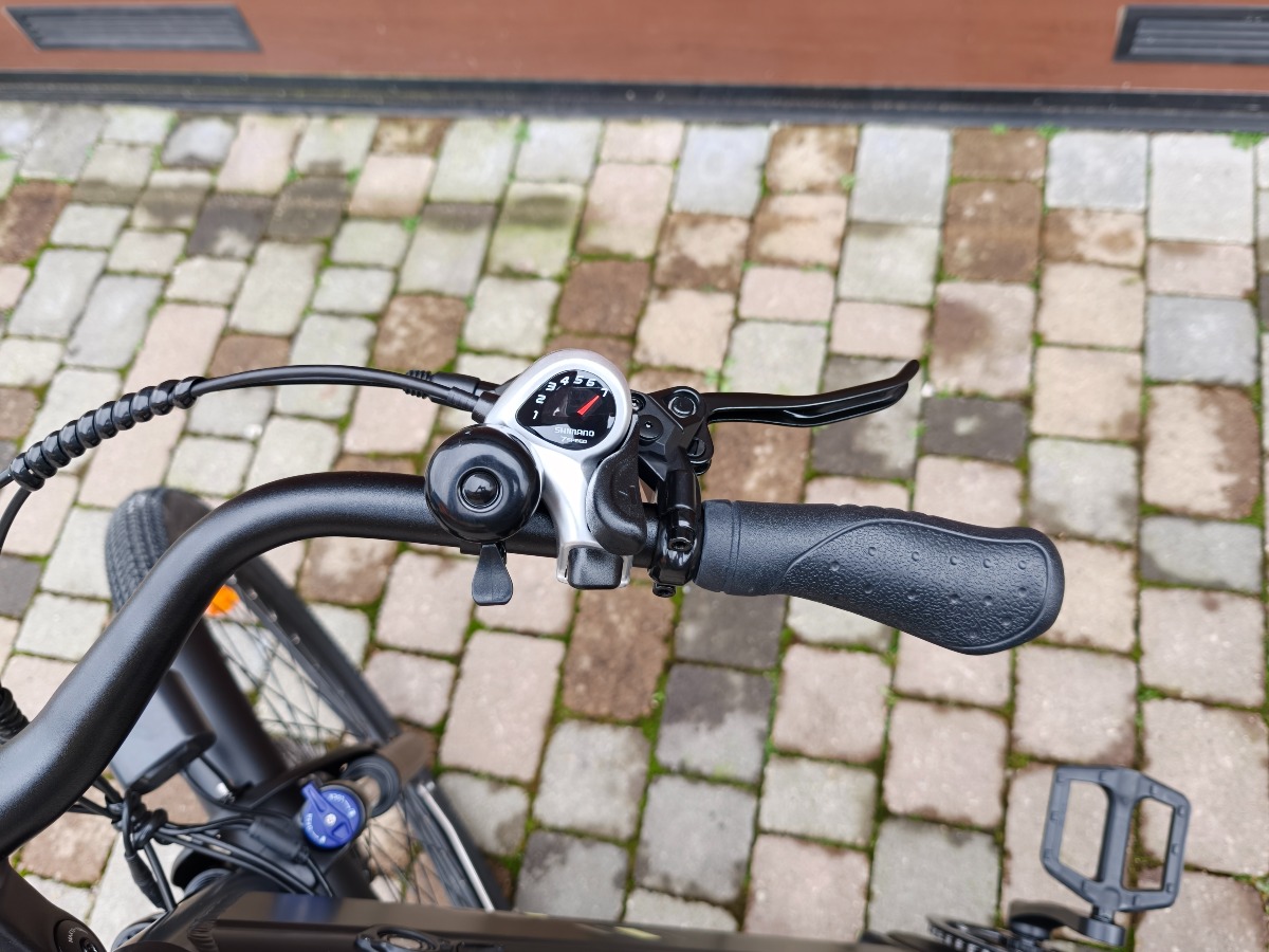 Qui troviamo il classico Shimano Tourney monocorona a 7 rapporti (super diffuso su questo tipo di bici), che sono ben calibrati e perfetti per pedalare sia lentamente in città che ad alte velocità, comprese le salite, anche se ovviamente non abbiamo a che fare con una bici da montagna.
