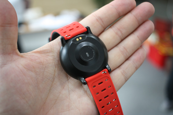 Sul retro troviamo il sensore per la misurazione del battito cardiaco e i due pin magnetici per la ricarica.