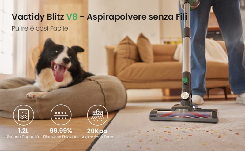 Vactidy Blitz V8 costa 109 euro al lancio, ma spesso si trova in offerta a meno.
