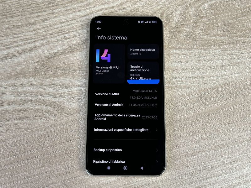 Il sistema operativo è Android 13 con interfaccia personalizzata MIUI 14.