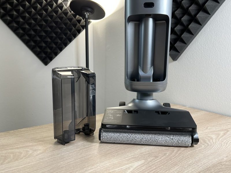 Al suo interno troviamo poi i contenitori di raccolta dell'acqua pulita (frontalmente) e di quella sporca (nella parte posteriore), invertiti rispetto a tutti gli altri lavapavimenti che ho testato fino ad oggi e più sottili e compatti della concorrenza.