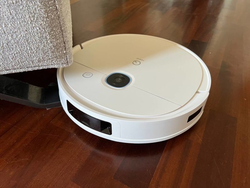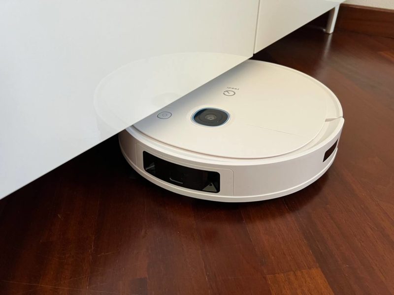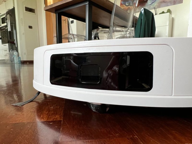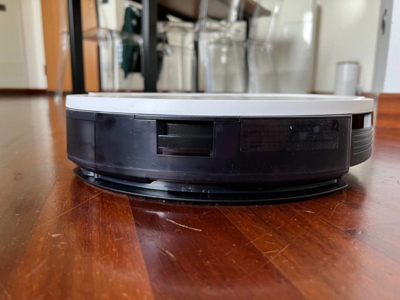 Grossa differenza rispetto ad altri robot: qui manca la torretta laser superiore, che rende il robot meno preciso nella mappatura/navigazione in casa, ma gli permette di essere molto più basso e sottile dei concorrenti (solo 7.7 centimetri), garantendo dunque il passaggio anche sotto ai mobili più bassi in casa.