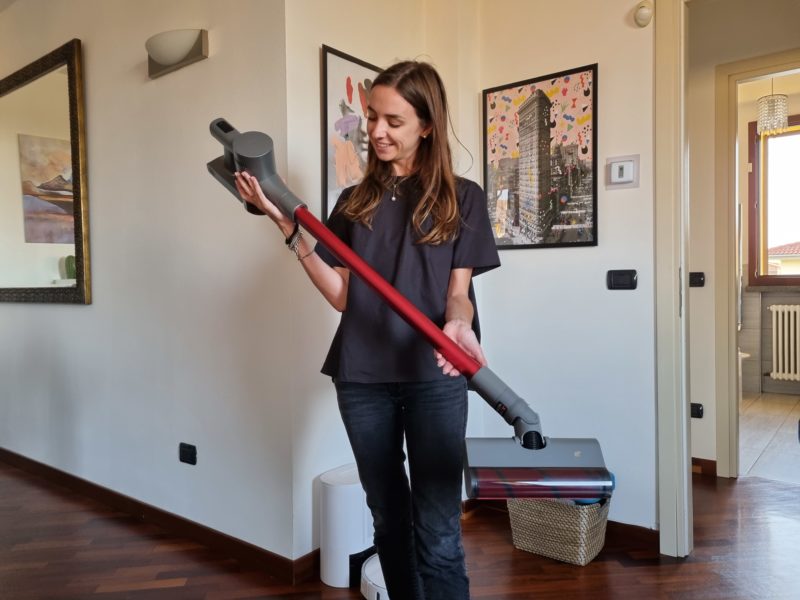 Utilizzare l'aspirapolvere è davvero un gioco da ragazzi: di default si attiva la modalità Standard, in caso di necessità possiamo attivare quella Max premendo un pulsante (arriva a 20.000 Pa ma la batteria dura solo 10 minuti in questo caso).