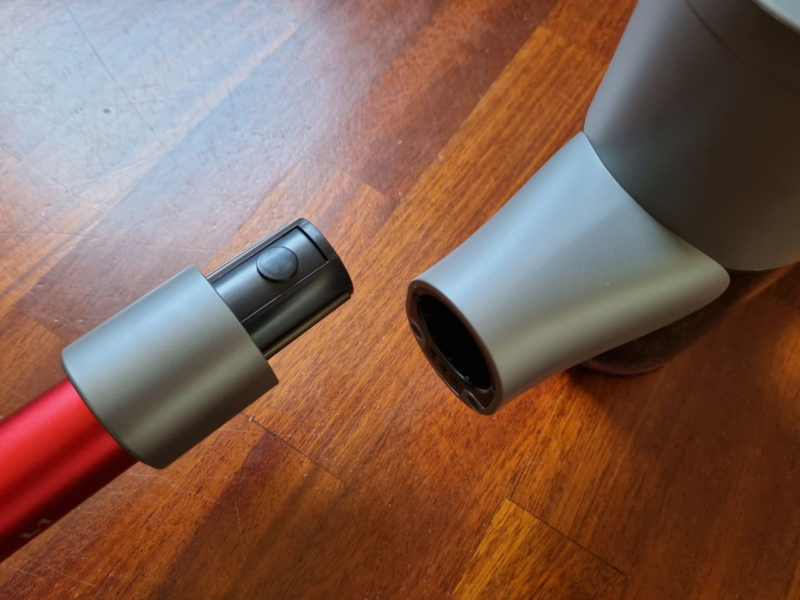 Infine, molto comodo l'attacco a muro: è piccolo, poco ingombrante e funzionale. Ha una superficie magnetica che mantiene eretta la scopa, oltre ad averne una parte che si aggancia al corpo per ricaricare la batteria.