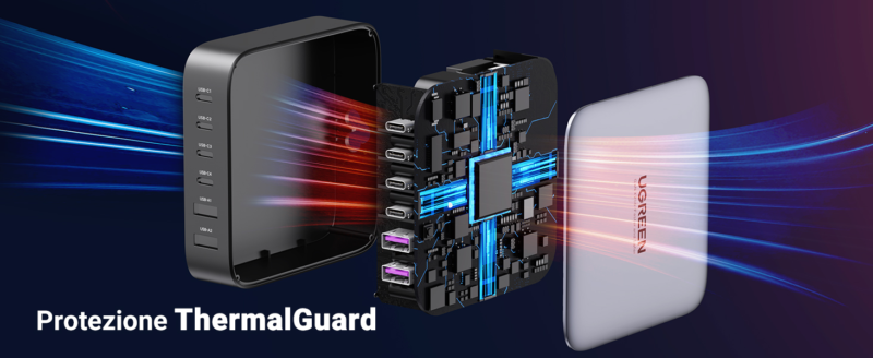 Tutto questo, tradotto in parole povere, significa che potremo ricaricare tutti i nostri apparecchi elettronici in modo estremamente facile, comodo, veloce e sicuro, collegandoli tutti a questo Ugreen Nexode 200W USB C GaN Desktop Charger.