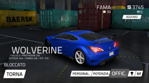 Parliamo ora delle modifiche e del tuning. Selezionando "Personalizza" dal menu principale possiamo modificare l'aspetto esteriore della nostra auto. Cambiare colore di base, scegliere i vinili da applicare e cambiare il tipo e il colore dei cerchi. La sezione "Potenzia" invece comprende la vera modifica e serve per installare gli upgrade per rendere migliori le prestazioni in gara. Possiamo elaborare il motore, il turbo, il cambio, le gomme, il nos, il peso e l'aerodinamica. Chiude il tutto la cosiddetta "Officina" che in pratica non è altro che il concessionario auto del gioco.