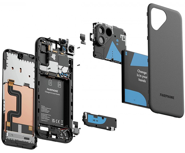 - neutralità climatica: per ogni Fairphone 5 realizzato viene data nuova vita ad un telefono o riciclata la stessa quantità di rifiuti elettronici