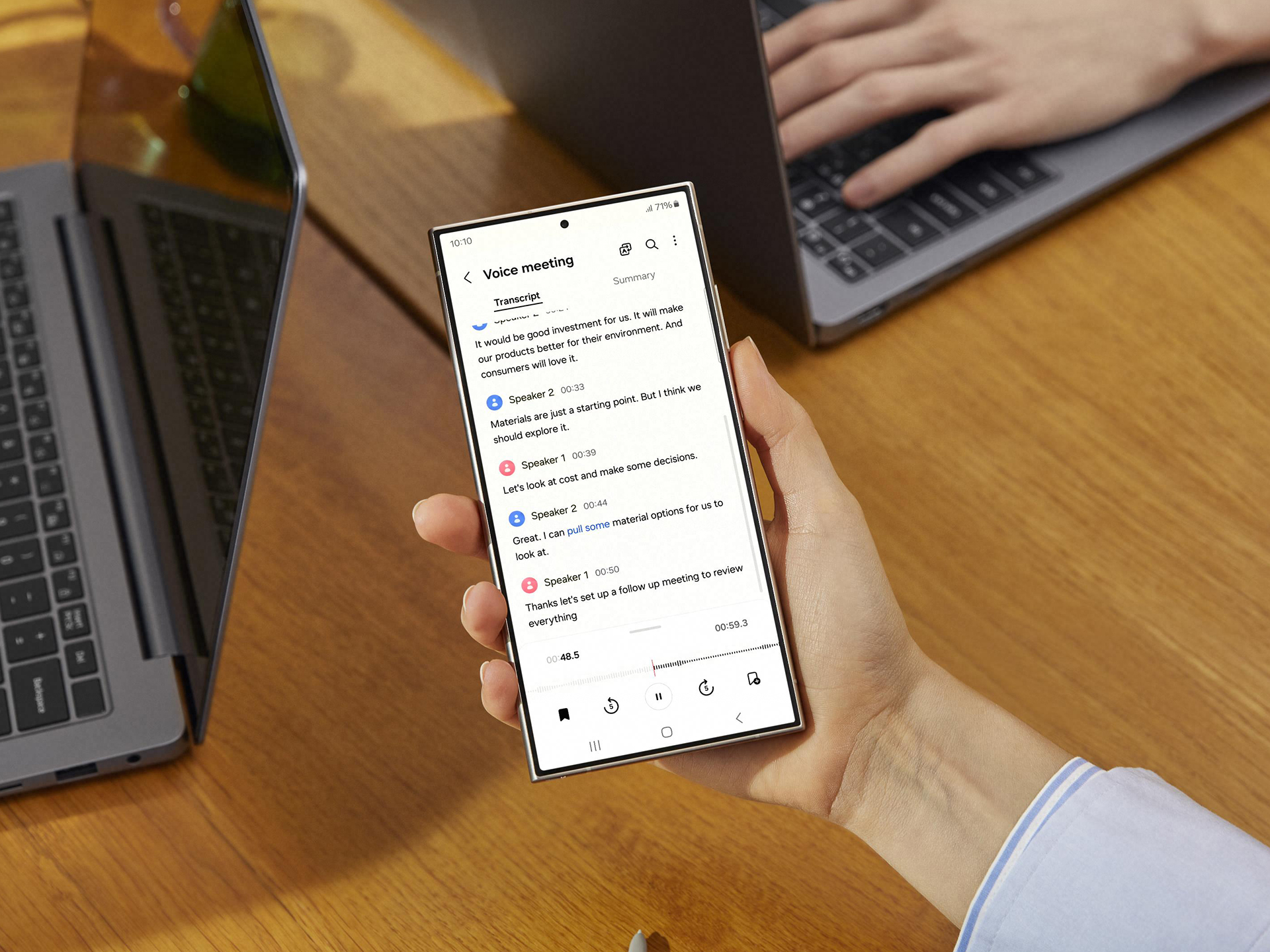 - Assistente Note: integrato in Samsung Notes, permette di accedere al riepilogo delle attività creato dall'AI e di creare modelli per prendere appunti.