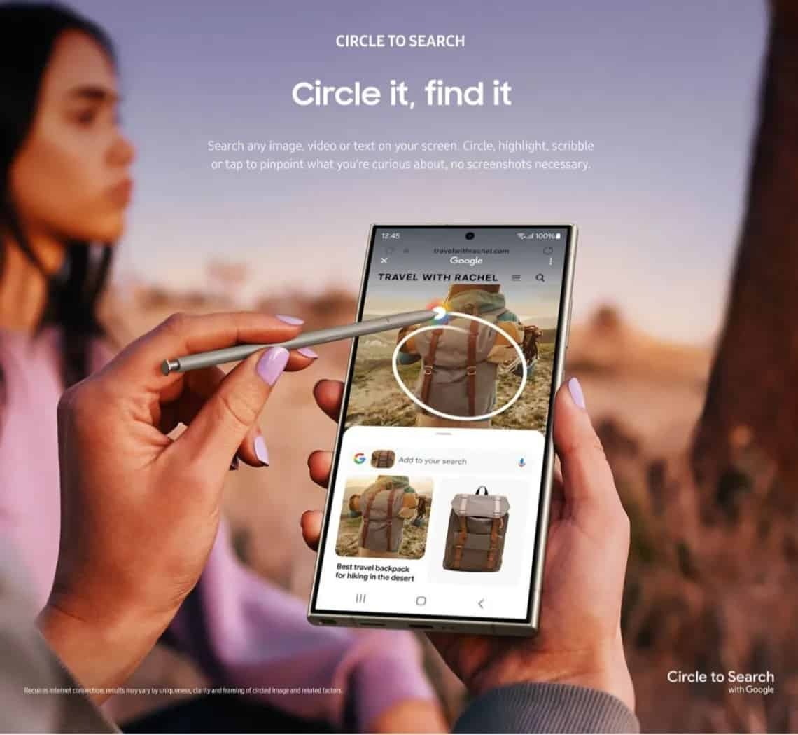 - Cerchia e cerca: innovativo strumento di ricerca su Google basato sui gesti disponibile senza dover uscire dall'app che si sta utilizzando. Basta premere a lungo il tasto Home e cerchiare/toccare qualsiasi cosa sullo schermo: l'AI dello smartphone restituirà i risultati di ricerca.