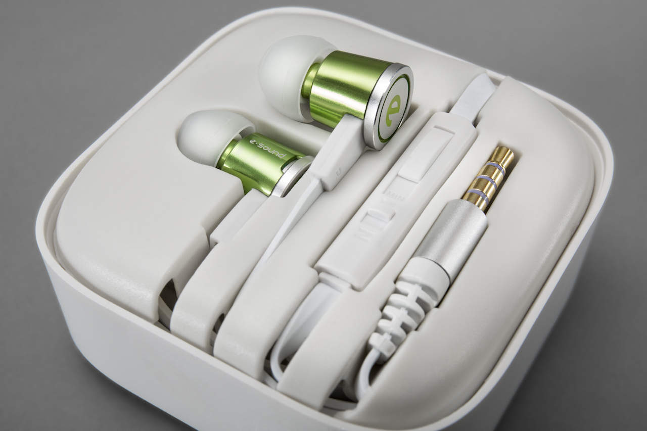 In dotazione viene offerta una cuffia auricolare e-sound realizzata in metallo con connettore placcato in oro e cavetto piatto.