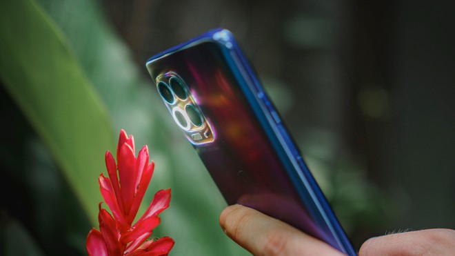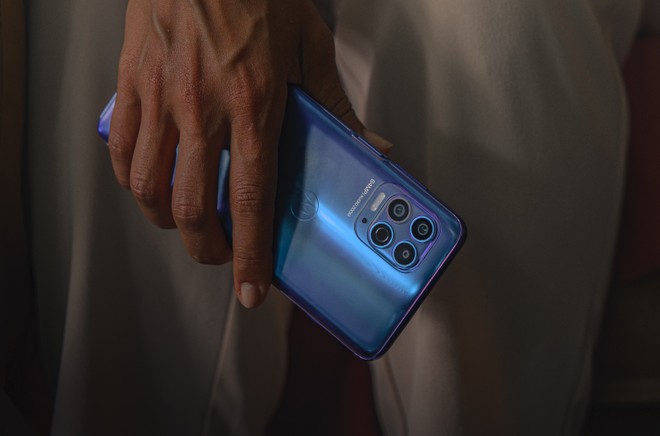Lato design, la scocca posteriore di Moto G100 è pulita e luminosa, caratterizzata dalla presenza del logo Motorola al centro e dal corposo comparto fotografico. Gli obiettivi sono disposti in due griglie da due e sono accompagnati dal flash LED appena sotto.