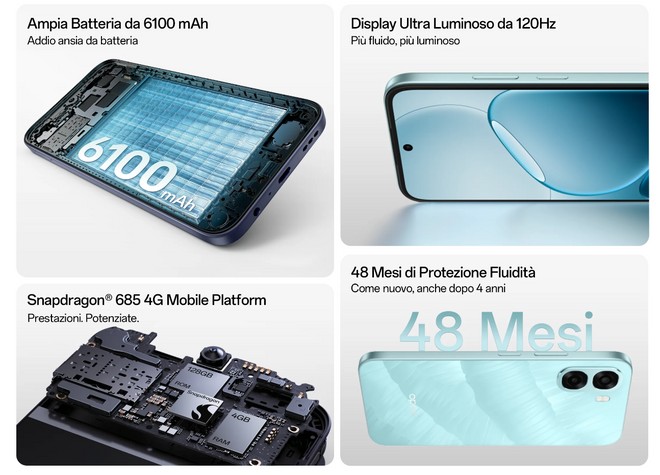 OPPO A6 Series ufficiale in Italia: 4 smartphone economici con batteria enorme, 120Hz e fluidità fino a 5 anni