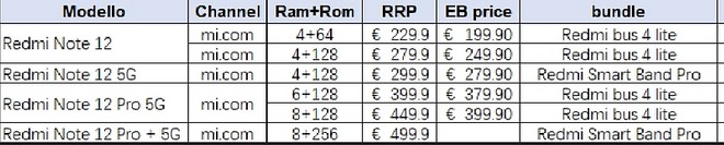 - Redmi Note 12 5G è disponibile nella versione 4GB+128GB a partire da 299,90€