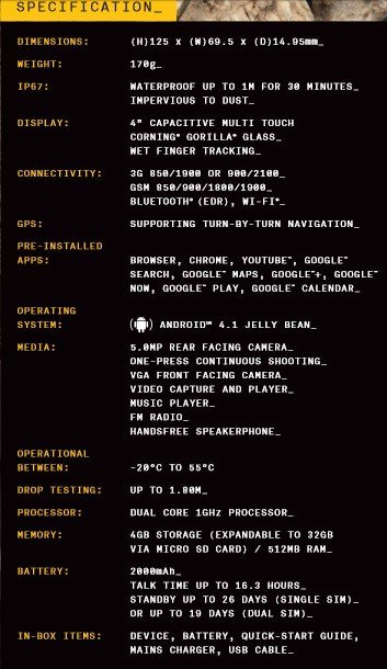 Il Cat B15 è certificato IP67. Ciò significa che è resistente alla polvere ed è impermeabile. Si può utilizzare anche con le mani bagnate o quando si è sotto la pioggia senza problemi. Il corpo in alluminio unito ad alcune parti gommate è resistentissimo. Il Display è antigraffio grazie al famoso Corning Gorilla Glass. Resiste a cadute fino a 1,8 metri anche sul cemento e rimbalza indietro senza problemi, inoltre supporta immersioni in acqua fino ad 1 metro di profondità. Smartphone Android potente e resistente. Monta Android stock per un'esperienza utente veloce, fluida e flessibile tramite l'utilizzo del Browser, Mail, Giochi e molto altro ancora.