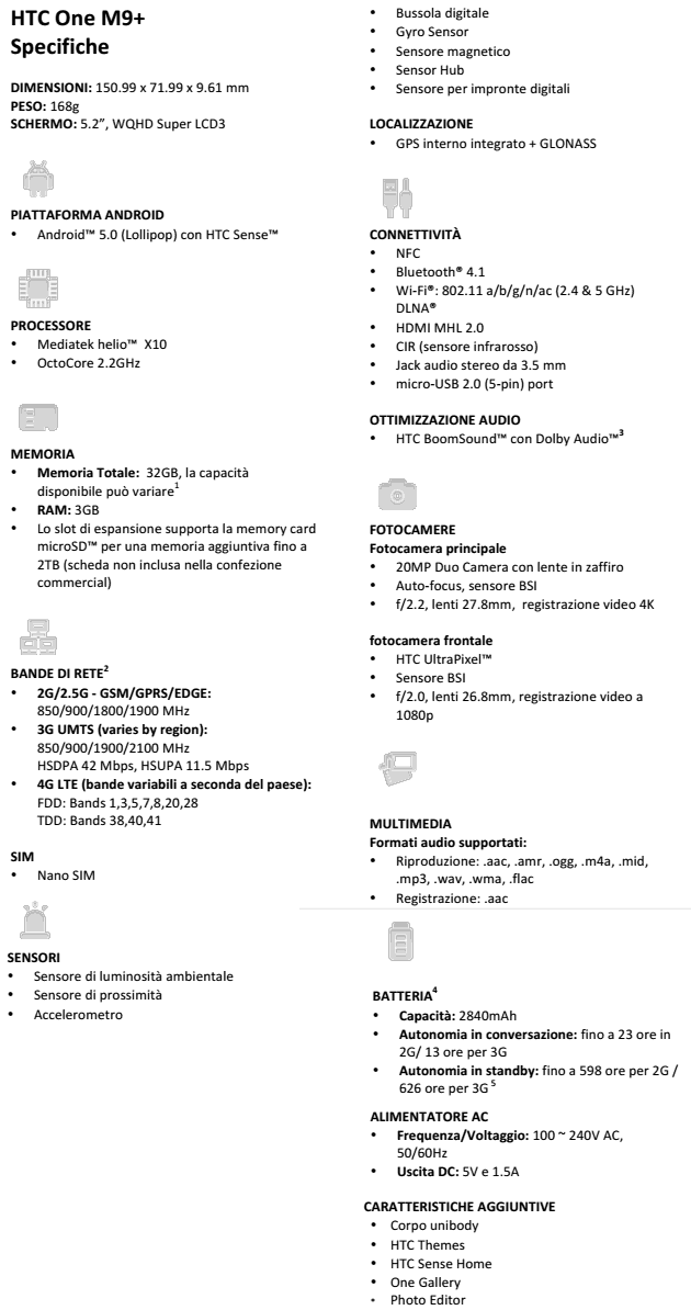 “Unendo l’eccellenza del design a una tecnologia avanzata, HTC One M9+ esprime perfettamente la filosofia di HTC, connettendo le persone alle proprie passioni e facendole entrare in completa sintonia con il proprio smartphone” afferma Chiara Nacinovich, Head of Marketing di HTC Italia. ”HTC One M9+ consente agli utenti di godere a pieno della One experience, un’esperienza premium portata ai massimi livelli grazie alla sua potente fotocamera e al a suo audio coinvolgente racchiusi in un design, perfetto ed elegante”.