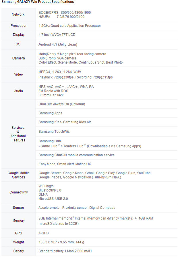 Samsung Galaxy Win: Nuovo Smartphone Entry Level per il Mercato Europeo