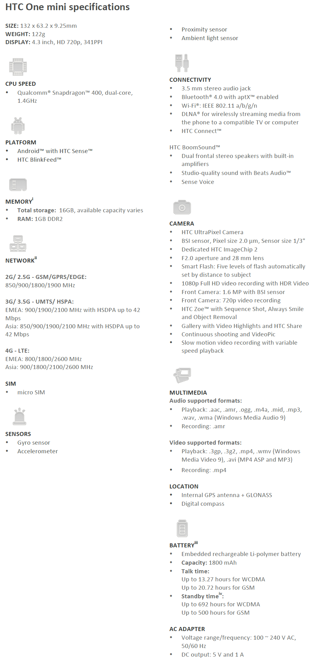 HTC One mini risponde alle esigenze di chi vuole il meglio della tecnologia mobile in un formato che sta facilmente in tasca e viene presentato in un periodo particolarmente eccitante per l’azienda, in quanto progettato e costruito sulla scia di un telefono leader nell'innovazione. Richiamando il design iconico di HTC One, questo nuovo rappresentante della famiglia One combina HTC BlinkFeed™, HTC Zoe™ e HTC BoomSound™ in un display da 4.3” grazie a un potente processore dual-core da 1,4 GHz. Il telefono dispone inoltre dell'ultima versione di Android con HTC Sense®, offrendo la riconosciuta esperienza mobile di HTC agli appassionati di stile che richiedono look premium e prestazioni top.