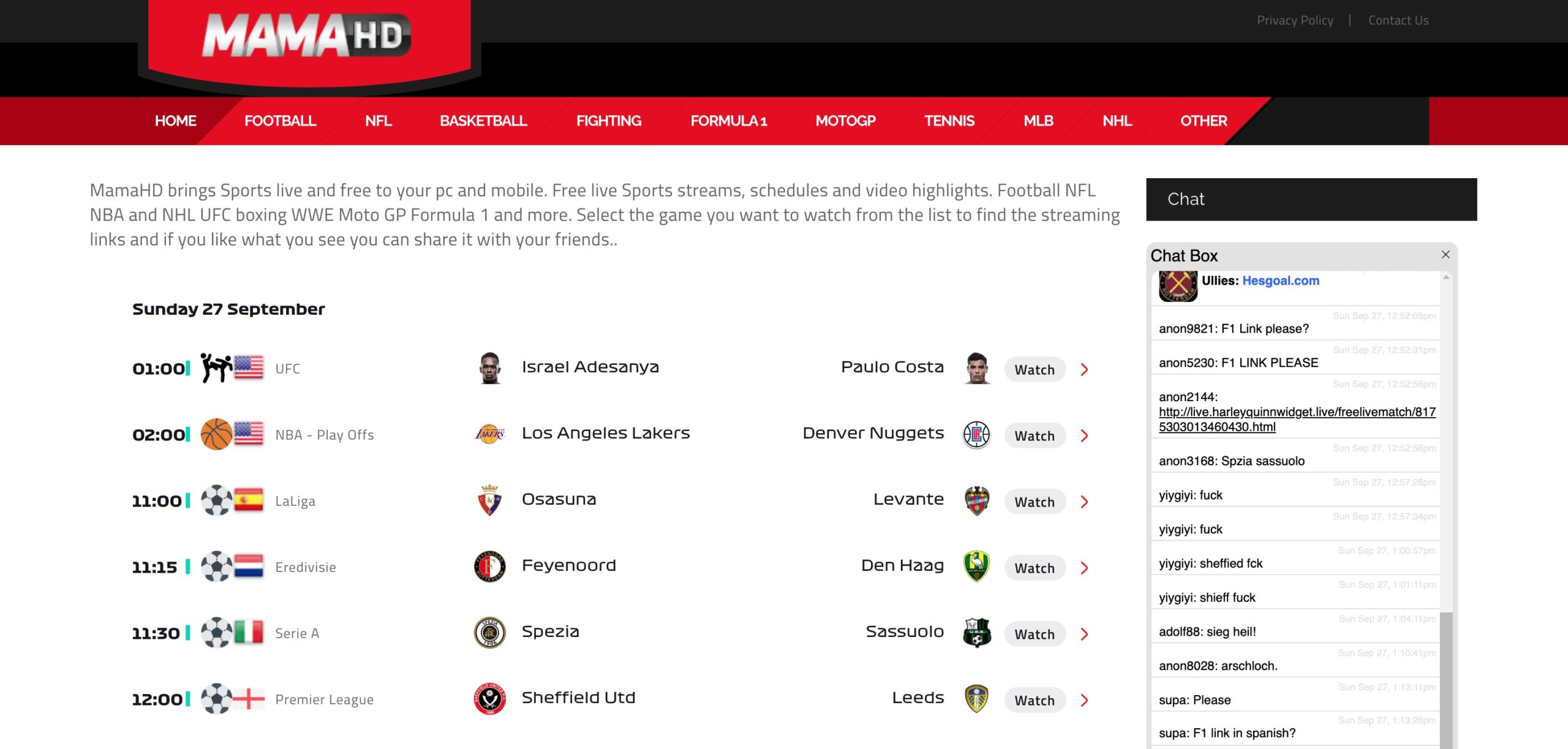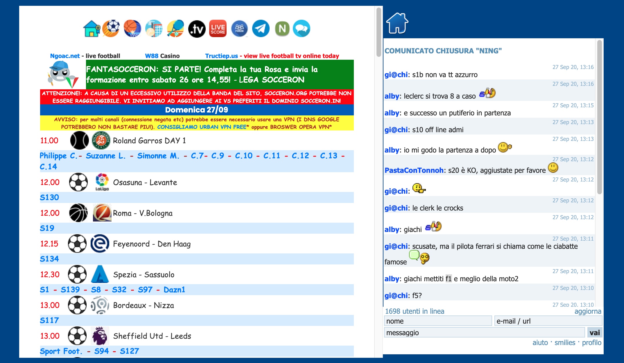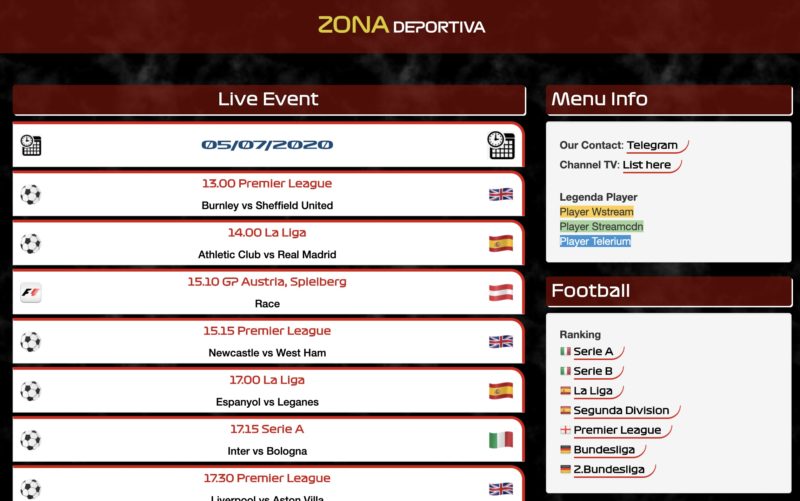 - socceron.in – sito italiano, sempre aggiornato, contiene tantissimi link per qualsiasi sport con commento in italiano. Consigliatissimo!