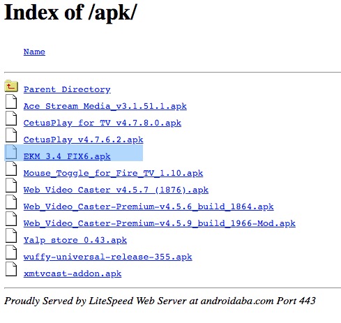 - Nella pagina successiva troverai l’elenco di file APK che puoi installare dalla sorgente: consiglio di scaricare e installare almeno Evil King Media (potrebbe essere rinominato anche come EKM per abbreviare il nome), Mouse Toggle, Web Video Caster, CetusPlay e Wuffy Player