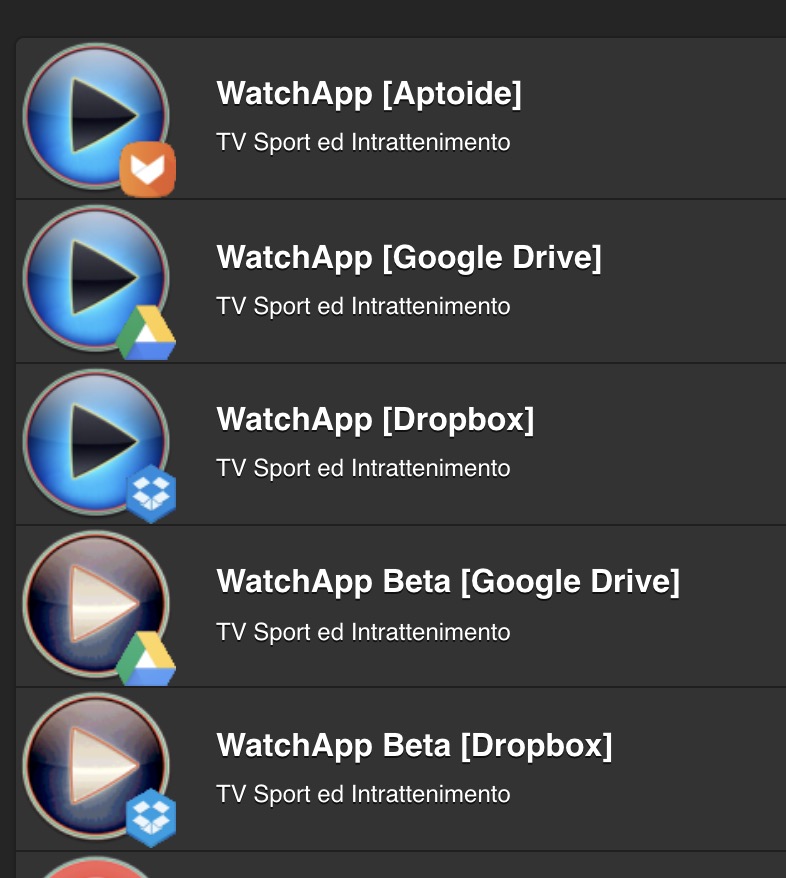 Da notare però che, al contrario di app simili come TVTAP, WatchApp NON ha un player video integrato: per poter aprire i canali e le liste IPTV di WatchApp dovrai usare programmi di terze parti (comunque gratuiti) come Wuffy o XMTV Player.