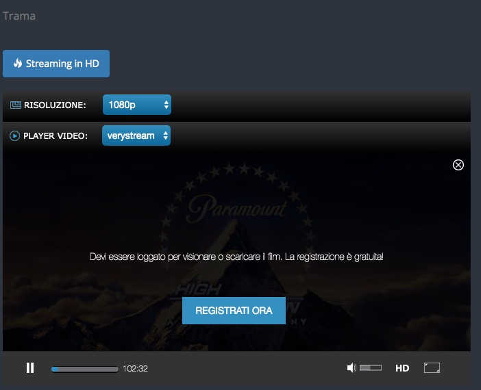 - dopo aver chiuso la pubblicità, non ti resterà che avviare la riproduzione del film in streaming cliccando sul tasto "Play"