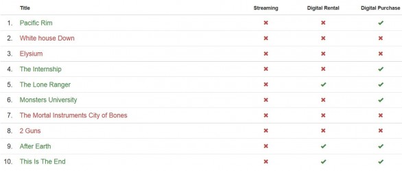 Analizzando meglio la classifica pubblicata dal sito PiracyData.org, otteniamo un’istantanea precisa della situazione e scopriamo che la top ten non comprende neppure un film disponibile sui colossi dello streaming Netflix e Amazon Prime. Un paio di essi erano disponibili per il noleggio online (The Lone Ranger, After Earth, e This is the End per essere precisi), una parte poteva essere acquistata su iTunes a prezzo pieno. Per quattro di essi, tra cui Elysium e White House Down, l’unica maniera di ottenere una copia digitale era la pirateria. Ancora una volta, dunque, il ragionamento conferma quanto abbiamo sostenuto fino ad ora: bisogna rendere disponibili sul web i contenuti multimediali in modo legale per combattere la pirateria.