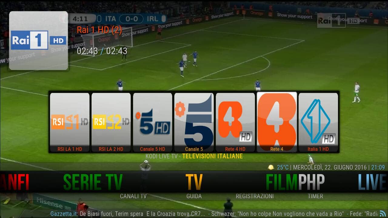 Come guardare sport, calcio, partite e televisione italiana in streaming gratis su Kodi con Kodi Live TV