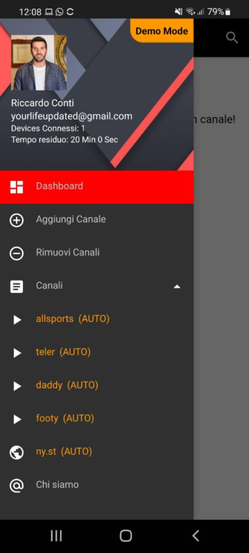 - NOTA IMPORTANTE: se fai il login con Google è molto comodo, perché in questo comodo tutte le informazioni saranno legate al tuo account, come ad esempio la lista automatica dei canali, che in caso contrario andrà inserita ogni volta. Inoltre, senza account Google e senza pagamento dell'abbonamento, potrai guardare solo 20 minuti al giorno di sport