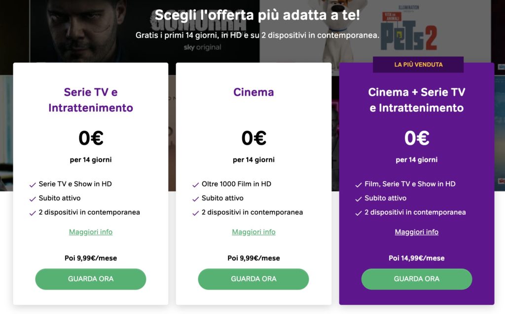 Al pari di ogni altro servizio concorrente, anche NOW TV, che è fruibile su vari tipi di dispositivi ( smartphone, tablet, PC, Mac, Smart TV, console...), prevede un abbonamento a pagamento, con varie formule disponibili (il prezzo richiesto cambia a seconda del device su cui vogliate sfruttarlo e dei contenuti di tuo interesse).