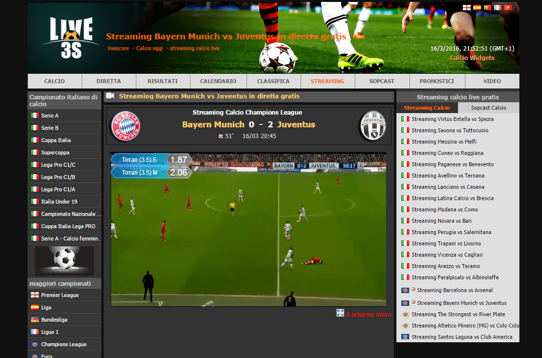 Si chiama it.live3s.com ed è un nuovo e fantastico sito web creato dai pirati e che mi sono imbattuto per caso in una delle tante pubblicità che si trovano sul web e che tramite un'interfaccia grafica semplice ed intuitiva permette di vedere tutto calcio come la seria A e la champions league gratis senza pagare nulla.