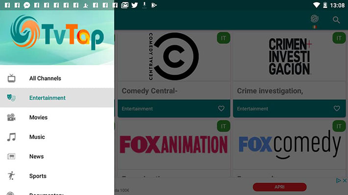 TVTAP è la migliore app che permette di vedere in tantissimi canali Italiani in streaming su Android.