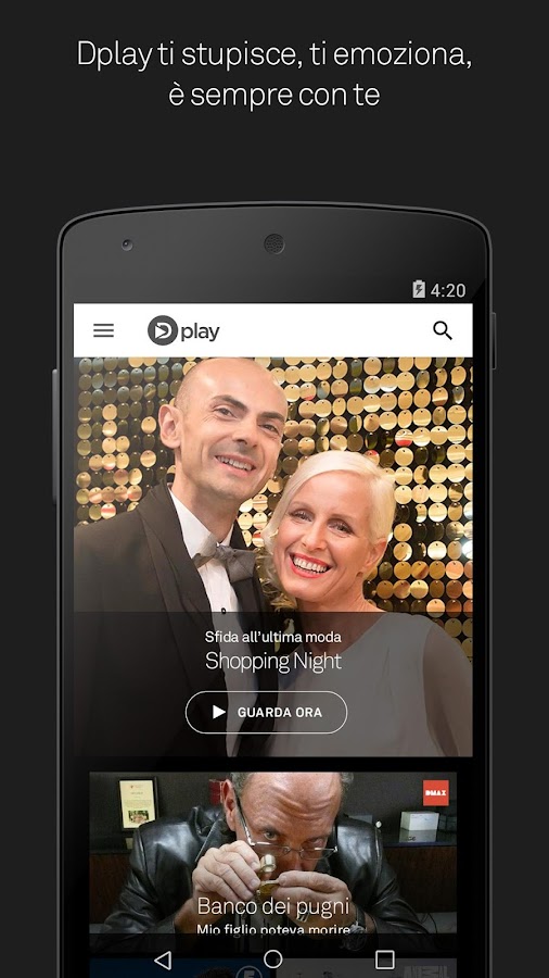 Dplay è una nuova applicazione di streaming video che permette di guardare i tuoi programmi preferiti di Real Time, Dmax, Focus e Giallo in movimento direttamente dal tuo smartphone o tablet Android e...